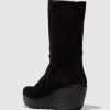 σουέντ/μους μαύρο Fly London γυναίκες μποτάκια με φερμουάρ yemy408 λάδι NF428V3